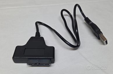 Vendo cavo adattatore da SATA Slimline (13 pin totali: 7 dati + 6 alimentazione) a USB. Questo cavo permette di utilizzare esternamente i lettori ottici (Masterizzatori/Lettori DVD o Blu-ray) estratti dai computer portatili. Specifico per unità Slimline SATA da laptop. Non compatibile con hard disk o SSD SATA standard da 2,5" o 3,5". - Viene riconosciuto automaticamente da Windows e Mac senza bisogno di driver. -Si alimenta direttamente tramite la porta USB (non serve alimentatore esterno). Condizioni: Ottime, testato e funzionante. Ideale per chi ha rimosso il lettore DVD dal portatile per far spazio a un secondo disco e vuole continuare a usarlo esternamente quando serve. NOTE: Questo è un annuncio da PRIVATO, l'oggetto dell'inserzione è di tipo PERSONALE e la formula di vendita è VISTO E' PIACIUTO. Non sarà fornita alcuna prova d'acquisto a valore di garanzia ne assistenza post-vendita.