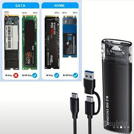Adattatore per SSD M.2 NVME SATA, 10 Gbps USB 3.1 Gen 2 Type C per M.2 NVMe PCIE e SATA M-Key/B+M Connettori SSD di Dimensioni 2230 2242 2260 2280