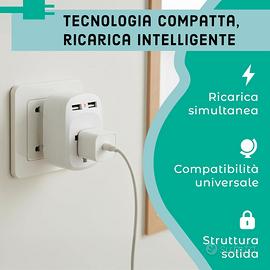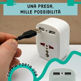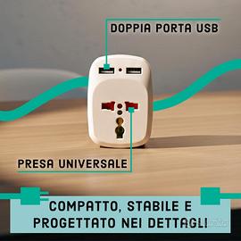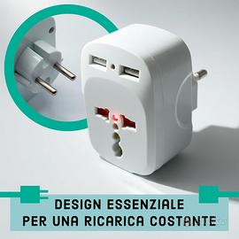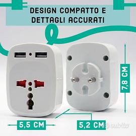 🌍 Adattatore Universale da Viaggio Presa Internazionale USA UK EU JP CH - Travel Adapter Tutto-in-Uno con Doppia Porta USB-A/ e Compatibilità in 150+ Paesi - Leggero e Compatto. 🌏 Copertura Globale Totale: Compatibile con oltre 150 paesi, inclusi Giappone, Cina, USA, Canada, Messico, Australia, tutta Europa. Include spine scorrevoli integrate per standard UK, USA, AUS ed EU (tedesca/italiana) per una connessione immediata senza accessori extra. Compatibile per il Kenya e Commonwealth: Grazie alla spina Tipo G integrata, è ideale per Kenya, Regno Unito, Irlanda, Dubai, Singapore e Malesia. Copre in totale oltre 150 paesi, inclusi USA, Giappone, Cina e tutta Europa. 🔌 Ricarica Intelligente 3-in-1: Dotato di due porte USB, funge da vero caricatore universale. Carica contemporaneamente il tuo smartphone, tablet e un altro dispositivo elettrico occupando una sola presa a muro. Adattatore Spina Inglese – Realizzato in ABS resistente, con sistema plug & play. Basta inserire e utilizzare senza bisogno di configurazioni. ✈️ Ultra-Compatto e Leggero: Con un peso di soli 110g e dimensioni ridotte (7.8x5,5x5,2 cm), è il perfetto salvaspazio per valigie, zaini e borse. Ideale per hotel, aeroporti e alloggi temporanei dove lo spazio e le prese sono limitati. 🔄 Massima Reversibilità: Perfetto sia per chi viaggia dall'Italia all'estero, sia come adattatore per dispositivi americani/asiatici da collegare in Italia. La spina inglese (UK) pieghevole e quella giapponese garantiscono continuità ovunque ti trovi. Dettagli Tecnici: Dimensioni: 7,8 x 5,5 x 5,2 cm Peso: 110 grammi (Ultra-light) Porte USB: 2x USB-A integrate Compatibilità Prese: Tipo A (USA/JP), Tipo G (UK), Tipo C/E/F (EU/DE), Tipo I (AUS/CH)
