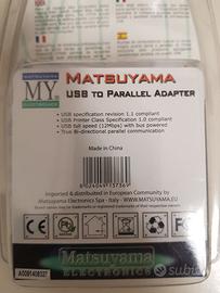 Adattatore matsuyama cf040 da usb a parallelo. connettore usb tipo a maschio ad un' estremità e cn36 (ieee1284) maschio su l' altro. consente di collegare dispositivi con porta parallela (ieee 1284) alla porta usb. comunicazione bidirezionale tra il pc e stampante. requisiti del sistema: windows 2000/xp/vista/win7, lunghezza cavo mt. 1,80. nuovo.