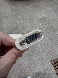 Vendo cavo adattatore video DVI-I maschio / VGA femmina originale Apple, usato ma perfettamente funzionante, plastiche ingiallite dal tempo come tutte le plastiche bianche Apple.