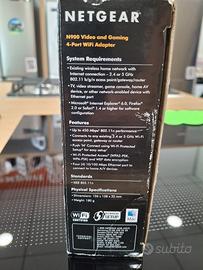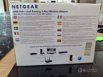 Adattatore WI-FI Netgear N900 Video and Gaming 4-P utile per collegare fino a 4 dispositivi con cavo Ethernet a una rete WiFi. Nuovo ancora con la confezione originale.