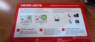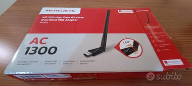 Adattatore WiFi USB MERCUSYS TP-Link MA30H AC1300Mbps, nuovissimo, zero installazioni necessarie, subito riconosciuto da Windows, preso per un PC desktop senza WiFi, ma dopo poco passato ad un laptop, quindi usato veramente pochissimo.