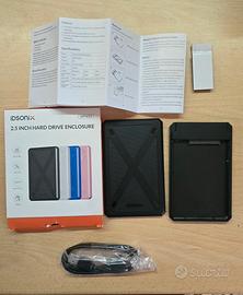 adda/case per memorie esterne 2.5 in plastica nera , la velocità dipenda dalla memoria inseriate tipicamente su ssd provati e sui 400/500 m/s .
