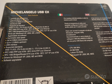 Vendo per passaggio a fibra ADSL modem Michelangelo USB Cx in ottime condizioni. Completo di istruzioni