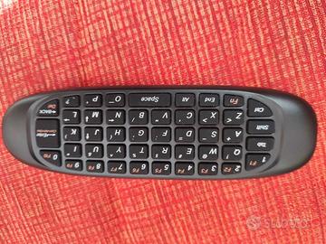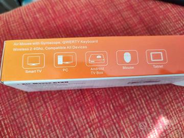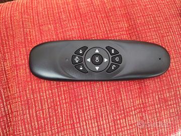 Vendo pratico Air Mouse C120 con tastiera integrata, perfetto per Smart TV, TV Box, PC e molto altro. Caratteristiche principali: Connessione wireless 2.4 GHz (con ricevitore USB) Sensore giroscopico: controlla il cursore muovendo la mano Tastiera QWERTY completa sul retro Compatibile con Android, Windows, Mac OS e Linux Design ergonomico, leggero e facile da usare Ideale per streaming, presentazioni e navigazione da divano. Si ricarica facilmente tramite il cavo USB incluso nella confezione. Ottime condizioni, perfettamente funzionante Usato pochissimo 🔹 Incluso: Air Mouse C120 Ricevitore USB