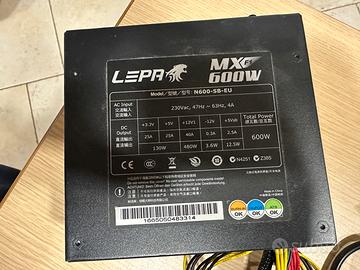 Alimentatore PSU Lepa 600 w Perfettamente funzionante, cambio per upgrade build, che richiede piu energia. Completo di cavo corrente italiano. Silenziosissimo, al pari del mio nuovo Sharkoon. Condizioni perfette, senza difetti.