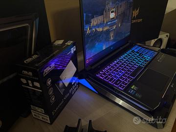 Il pc viene fornito con scatola originale, base di raffreddamento klim mistral pagata 80€, viene dotato anche di lettore dvd/masterizzatore estrno, basetta per tenerlo in verticale.