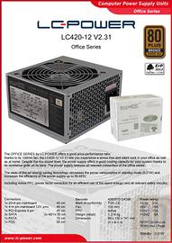 La SERIE OFFICE di LC-POWER offre un buon rapporto qualità/prezzo: grazie alla ventola da 120 mm, l'LC420-12 V2.31 consente di lavorare in modo silenzioso e senza stress, sia in ufficio che a casa.