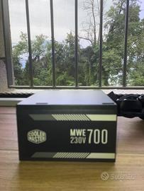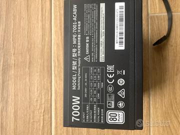 Alimentatore Cooler Master MWE 700W 80 Plus White non modulare, perfettamente funzionante e in condizioni estetiche ottime. Silenzioso, efficiente, ideale per PC da gaming, ufficio o server casalingo. Certificazione 80+ White per una buona efficienza energetica.