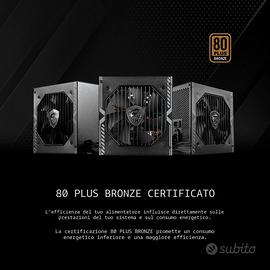 🖥️ MSI MAG A550BN – Alimentatore 550W 80+ Bronze | Perfetto per PC Gaming e Workstation | 5 anni garanzia con documento d'acquisto Vendo un MSI MAG A550BN alimentatore 550W certificato 80 PLUS Bronze, nuovo ed in confezione Retail ideale per build gaming di fascia media o PC da lavoro affidabili ed efficienti. ⭐ Caratteristiche principali Potenza continua: 550W (riesce a spingersi fino a 600W come da recensioni) Efficienza: 80 PLUS Bronze (fino all’85%) Ventola: 120mm a bassa rumorosità Design: Non modulare, formato ATX Protezione completa: OCP / OVP / OPP / OTP / SCP PFC attivo per maggiore stabilità Connettori: 1× ATX 24 pin / 1× EPS 4+4 pin / 2× PCI-E 6+2 pin / 5× SATA / 2× Molex / 1× FDD Dimensioni: 150 × 140 × 86 mm Condizioni: Nuovo in confezione Retail con 5 anni garanzia 🎯 Perché è un’ottima scelta? Perfetto per configurazioni gaming con GPU di fascia media, silenzioso, stabile e con ottima efficienza energetica, con pc con cpu come Ryzen 5 o 7 7600 7600x 7700 7800x3d 9800x3d 9600x e varie con accoppiate schede video come RTX 4060 4070 5060 5070 RX 6600 6650 6800 ecc ecc. Un alimentatore affidabile, ideale per chi vuole qualità MSI senza spendere troppo.