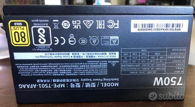 Vendo alimentatore Cooler Master MWE 750 Gold V2 Alimentatore Completamente Modulare (Spina UE) - 80 PLUS Gold in perfette condizioni, come nuovo.Usato pochissimo, vendo per passaggio a modello successivo.