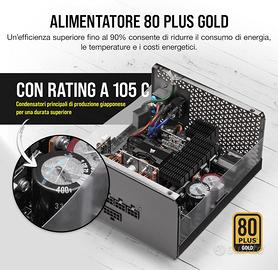 Gli alimentatori CORSAIR RM850x Series, interamente modulari, sono costruiti con componenti di altissima qualità, in modo da erogare un'alimentazione certificata 80 PLUS Gold al tuo PC, con un funzionamento praticamente inudibile.