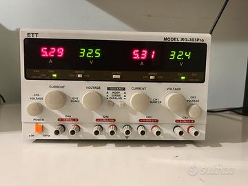 Vendo alimentatore da banco ETT RG-303Pro, modello professionale da laboratorio, stabilizzato e regolabile, ideale per elettronica, test di circuiti, manutenzione e progetti didattici.