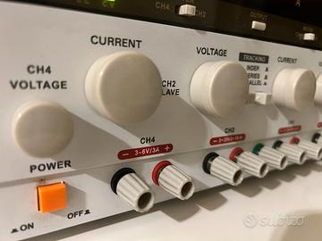 • CH1 / CH2: 0–30 V regolabili, 0–5 A ciascuno