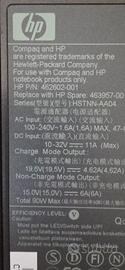 alimentatore notebook hp/dell/ HP Spare: 463957-001 Series HSTNN-AA04 AC Input; 100-240V~1.6A(1,6A) DC input: 10-32V --- 11A (Max) Charge Mode Output 19.5V(19,5V) --- 4.62A(4,62A) Non-Charge Mode Output: 15,0V 6A(6A) Total 90W Max