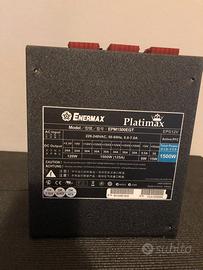 PSU Enermax Platimax 1500w modulare. Funzionante e tenuto in maniera maniacale. I cavi sono stati sleevati con paracord. Manca qualche cavo, ma i piu'rilevanti ci sono tutti.