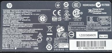 alimentatore originale HP 120w funzionante con connettore da 7,4mm diametro esterno e 5,0mm diametro interno,con pin centrale