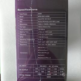 Alimentatore per PC Cooler Master N500. Non modulare. - Potenza 500W. - Modello: MWE 500. - Design nero.