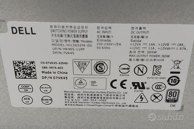 Vendo alimentatore per desktop DELL 7VK45 da 365W nuovo; ne ho diversi perché consegnati per errore in sostituzione di pc DELL non conformi. Prezzo trattabile per quantità.