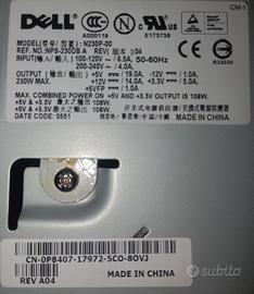 Alimentatore PC DELL N230P-00 Power supply 230W Smontato da un PC Dell Model DCSM PERFETTAMENTE FUNZIONANTE