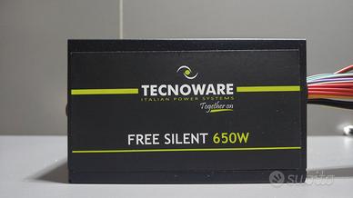 Vendo alimentatore per PC Free Silent da 650W (modello FAL650FS12), ideale per PC desktop, configurazioni home/office o build economiche.Caratteristiche:Potenza: 650 WattFormato ATXVentola silenziosa da 12 cmTensioni stabiliProtezioni da sovraccarico e cortocircuitoConnettori:• 20+4 pin motherboard• 4+4 pin CPU• SATA• Molex