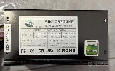 Alimentatore Mach Power da 1000W usato, perfettamente funzionante, ideale per PC desktop e configurazioni con schede video che richiedono alta potenza. Dotato di ventola silenziosa da 14 cm e certificazione 80 Plus Bronze per efficienza energetica. Pronto all'uso per garantire stabilità e sicurezza al sistema.