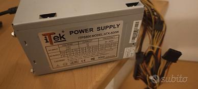 Vendo alimentatore per Case PC ITEK ATX 500W, con 20+4pin. L'alimentatore era all'interno di un pc che è stato poi smembrato e allora era funzionante, non ho possibilità di collegarlo per provarlo.