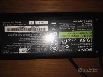 Alimentatore originale Sony VGP-AC19V36. AC Input: 100 ~ 240V 50 ~ 60Hz DC Output: 19.5V 4.7A 90W Connettore: 6.5mm * 4.4mm. No cavo