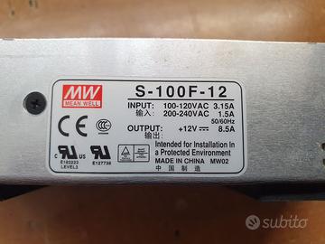 Vendo alimentatore switching 12Vdc e 8,5A come indicato in etichetta. Alimentatore testato e perfettamente funzionante.