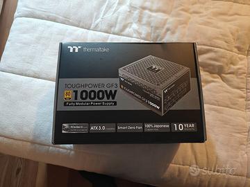 Vendo alimentatore Thermaltake Toughpower GF3 1000W, completamente modulare, certificazione 80 PLUS Gold, compatibile ATX 3.0 e PCIe 5.0 con connettore 12VHPWR (600W) per GPU di ultima generazione (RTX 4080/4090, ecc.). Condizioni: Usato, perfettamente funzionante, nessun difetto. Tenuto con cura, mai stressato. Completo di tutti i cavi modulari originali.