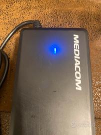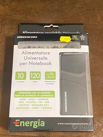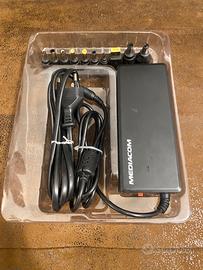 PRATICAMENTE NUOVO (acquistato in aeroporto a 40€ perché avevo dimenticato il caricabatterie del portatile ed utilizzato solo in quell’occasione). CORREDATO DELLA PROPRIA SCATOLA ORIGINALE E MANUALE ISTRUZIONI Caratteristiche del prodotto Marca: MEDIACOM Modello: Wall Power (M-ACNBU120) Potenza: 120 Watt Tensione in ingresso: Da 100V a 240V AC ~50-60Hz Tensione in uscita: Regolabile da 15V a 24.5V DC (commutabile a 15/16/18/19/20/22/24 Volt) Connettori: Include 10 connettori diversi per garantire la compatibilità con la quasi totalità dei notebook in commercio, come Acer, Asus, Compaq, Dell, Fujitsu, HP, IBM, Lenovo, Packard Bell, Samsung, Sony e Toshiba. Funzionalità: Offre alimentazione automatica e include protezioni contro sovracorrente e corto circuito.