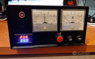 alimentatore variabile dan2 a 30v, tipo lineare con trasformatori toroidali, nessun ripple in uscita come avviene per i modelli switching, tensione pulita e stabile, ventilato e temperatura di innesco ventola impostabile, componenti di alta qualità, protezione con fusibili sia ingresso e sia uscita. boccole di alta qualità.