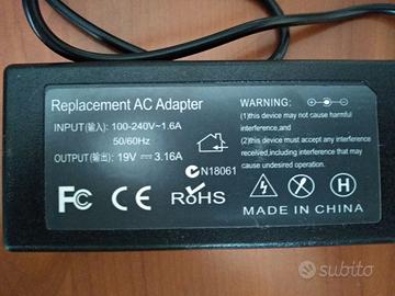 Vendo alimentatore n18061, acquistato x il mio Samsung R522, uscita 19 V 3,16 A, connettore 5,5 mm con pin centrale