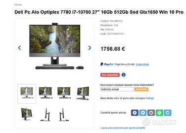 Splendido PC professionale AIO All-in-One 27", Condizione pari al nuovo vendo per inutilizzo, tastiera e mouse wireless originali, possibile spedizione nel suo imballo originale e/o ritiro in Torino