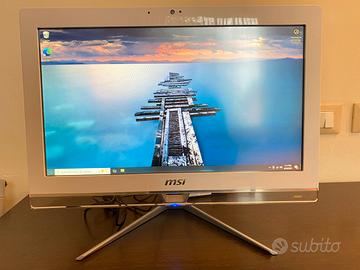 Computer fisso All in One "tutto in uno" della marca MSI, con schermo e PC integrati. È perfetto per un uso casalingo, dato che ha tutto integrato e occupa pochissimo spazio.