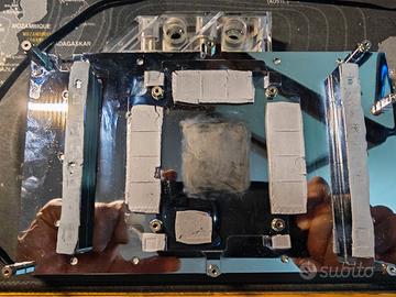 Vendo blocco water cooling per GPU Alphacool Eisblock Aurora Acryl GPX-N RTX 4090 con backplate, usato ma in condizioni eccellenti. Dettagli tecnici/descrittivi: Compatibile con schede grafiche NVIDIA RTX 4090 - Inno3D GeForce RTX 4090 iCHILL Nero, 24 GB GDDR6X (C4090-246XX-18330005) - Inno3D GeForce RTX 4090 iCHILL Frostbite, 24 GB GDDR6X (C4090-246XX-1833FB) - Inno3D GeForce RTX 4090 iCHILL X3, 24 GB GDDR6X (C40903-246XX-1833VA47) - Inno3D GeForce RTX 4090 X3 OC, 24 GB GDDR6X (N40903-246XX-18332989) - PNY GeForce RTX 4090 XLR8 Gaming Verto Epic-X RGB Overclocked Tripla Ventola, 24 GB GDDR6X (VCG409024TFXXPB1-O) - PNY GeForce RTX 4090 XLR8 Gaming Verto Epic-X RGB Tripla Ventola, 24 GB GDDR6X (VCG409024TFXXPB1) Realizzato in rame cromato + coperchio in acrilico, con illuminazione ARGB integrata (12 LED, con connettore JST 3-pin 5V) Alphacool Struttura a fin (spessore 0,4 mm, distanza 0,4 mm) per ottimizzare flusso e superficie di scambio termico Alphacool Piastra posteriore in alluminio (backplate) inclusa Alphacool Inclusi thermal pad e pasta termica (Alphacool Subzero) forniti con il kit originale Alphacool Condizioni: Usato con cura, mai urti o graffi significativi Verificato perfettamente funzionante Smontato e conservato da subito (non è mai rimasto esposto all’esterno) Perché acquistarlo: Offro un’ottima occasione per chi vuole un sistema a liquido di alto livello per la RTX 4090 spendendo meno Ideale per modding, build custom, raffreddamento efficiente e silenzioso Spese di spedizione / consegna: ritiro a mano in [Città / zona], oppure spedizione a carico dell’acquirente, ben imballato.