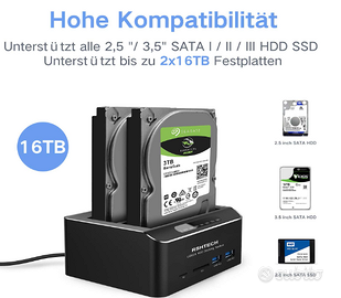 Supports 2x16TB Hard Drives: Dual-bay SATA hard drive bases can connect 2.5/3.5 inch SATA III HDD and SSD (backwards compatible with SATAI SATAII), supports 2x16TB HDDs simultaneously and UASP protocol
