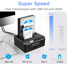 Super Fast Data Transfer: All in one Superspeed USB 3.0 hard drive docking station data file transfers (up to 6Gbps), 2 USB 3.0 ports and SD/TF card reader in front, Plug and Play, no additional reboot or drivers needed, Quick and Easy Tool-Free Installation