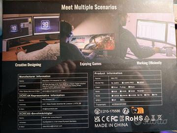 NUOVO mai aperto scatola ancora in cellofan Mini PC RGB verticale ACEMAGICIAN AMR5, con processore AMD Ryzen7 5800U (fino a 4,4 GHz), 32GB DDR4 di RAM, Disco SSD 1024GB(1TB), Triple Display(HDMI/DP/Type-C)/Dual LAN/WiFi 6/BT 5.2 Prezzo assolutamente non trattabile, preferibile consegna a mano su Roma zona Nomentana o spedisco previo pagamento con spese di spedizione a mezzo bonifico immediato o Paypal Design verticale e retroilluminazione RGB colorata per creare un'atmosfera piacevole ed elegante che permette anche di risparmiare spazio sulla tua scrivania e fornire facile accesso alle porte e ai pulsanti. e prestazioni e un'alta potenza di calcolo grafico, adatta a una varietà di compiti complessi. Caratteristiche dettagliate Sistema operativo: Windows 11 Usi specifici per il prodotto : istruzione, affari, personal computer, computer dell'ufficio, sala conferenze, computer multimediale, home theater, apprendimento online, lavoro da casa, istruzione, cartellone, segnaletica digitale, navigazione web Tipo di periferiche ottiche: Nessuna Interfaccia hardware: DisplayPort, Ethernet, HDMI, USB 3.0 Uscita video: HDMI, DisplayPort Interfaccia di uscita video: HDMI, DisplayPort Tipo di interfaccia dell'Hard-Disk: SSD Dispositivi compatibili:Monitor, cuffie, smartphone, altoparlanti, tastiera, proiettore, mouse Quantità totale di slot di espansione; 2 Tipo di processoreAMD Ryzen 7 Processor SocketBGA 413 Processor Count8 Velocità massima del modello di CPU 4,4 GHz Graphics DescriptionIntegrato Graphics CoProcessorAMD Radeon Graphics Graphics RAM Size16 GB Graphics RAM TypeDDR4 SDRAM Capacita HD SSD : 1 TB Slot memoria disponibili : 2 Memoria RAM installata: 32 GB Tecnologia memoria RAMDDR4 Tipo di memoriaDDR4 SDRAM Risoluzione predefinita schermo : 1920x1080 Risoluzione Max Schermo : 3840x2160 Connettività WIFi 6 e Bluetooth 5.2 Contenuto della scatola Cavo HDMI. Adattatore di alimentazione Istruzioni per l'uso Mini PC Cavo HDMI
