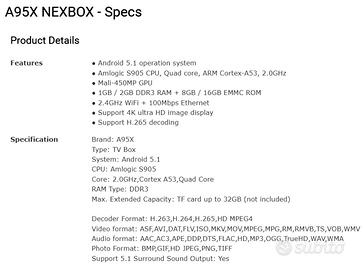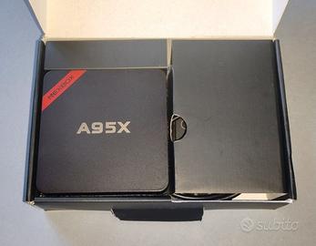 Usato ma in buone condizioni, Android TV marca NEXBOX - A95X con mini tastiera retroilluminata.