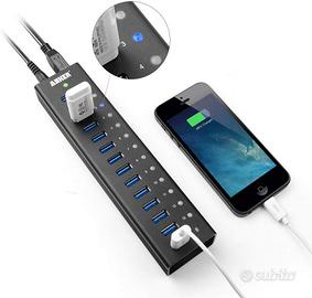 Anker AH241 USB 3.0 Aluminum 13-Port Hub + 5V 2.1A Smart Charging Port with 12V 5A Power Adapter [VIA VL812-B2 Chipset]