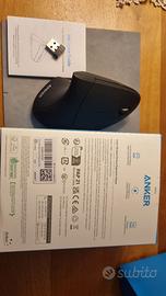 Anker Mouse Verticale Wireless - Mouse Senza Fili Con Impugnatura Verticale e Design Ergonomico, Nero ricevitore USB da 2,4 G • Il design ergonomico scientifico promuove posizioni neutre sane del polso e del braccio per un movimento fluido e meno carico complessivo. • Risoluzione 800 / 1200 / 1600 DPI La tecnologia di tracciamento ottico offre una maggiore sensibilità rispetto ai mouse ottici tradizionali per un tracciamento fluido e preciso su una varietà di superfici. • I tasti aggiuntivi al successivo / precedente offrono comodità durante la navigazione in Internet, la scelta eccellente per i navigatori di Internet, i giocatori e le persone che lavorano al computer. • Nella modalità di risparmio energetico (l'alimentazione è completamente disattivata) dopo 8 minuti di inattività, premere il tasto destro o sinistro per svegliarlo. Dimensioni del prodotto: 120 x 62,8 x 74,8 mm; peso del prodotto: 96,4 g Usato poche volte – ottime condizioni Contenuto della confezione: 1 mouse ottico ergonomico verticale wireless Anker 2 batterie AAA 1 ricevitore USB da 2,4 G (nella parte inferiore del mouse),