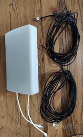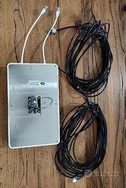 Antenna a Pannello da esterno MIMO, per segnali 4G LTE e HSDPA, con due cavi e connettori.