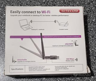 Antenna Wifi Usb Sitecom N300 per PC desktop e notebook. Velocità 300 mbps. 802.11b/g/n, USB 2.0