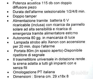 -1 sirena wireless con pannello solare