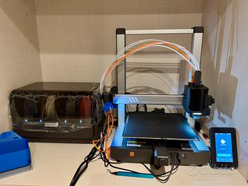 Vendo per passaggio a sistema superiore stampante 3D Anycubic Kobra 3 in versione Combo, completa di modulo ACE Pro per la stampa multicolore e multi-materiale (fino a 4 colori). La macchina è in condizioni estetiche e funzionali pari al nuovo, utilizzata pochissimo: ha all’attivo solo 140 ore di stampa totali (verificabili da menu). Caratteristiche principali: Velocità di stampa: Fino a 600mm/s (stampa un Benchy in circa 15 minuti). Sistema ACE Pro: Gestisce 4 bobine, con funzione di cambio colore automatico e asciugatore di filamento integrato (fondamentale per mantenere il PLA/PETG asciutto durante la stampa). Area di stampa: 250 x 250 x 260 mm. Livellamento automatico: Perfetto, mai dovuto regolare il piatto manualmente. Ripresa stampa: In caso di mancanza di corrente o fine filamento. Cosa includo nell'offerta: Stampante Anycubic Kobra 3. Modulo ACE Pro (per 4 colori). Tutti i cavi originali, boccaglio per lo spurgo e accessori di serie (brugole, ugello di ricambio). La stampante è aggiornata all'ultimo firmware disponibile, è estremamente intuitiva e perfetta sia per chi inizia sia per chi vuole produrre oggetti multicolore senza complicazioni. Prezzo: 280€ Consegna: Prediligo lo scambio a mano in zona San Siro per permettere all'acquirente di visionare la macchina.