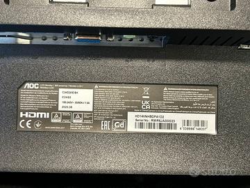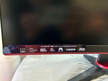 Schermo mai usato, scatola originale non disponibile AOC Gaming C24G2AE - Monitor da 24 pollici Full Hd, 165Hz., 1ms, FreeSync Premiu Cavo HDMI, Displayport, cavo alimentazione e libretto di istruzioni Prezzo amazon: 180 circa Schermo: Dimensioni: 23,6 pollici (circa 59,9 cm) Risoluzione: Full HD (1920 x 1080 pixel) Design: Curvo (curvatura 1500R), per un'esperienza più immersiva Rapporto d'aspetto: 16:9 Frequenza di aggiornamento (Refresh Rate): 165 Hz Pannello: Tipo di pannello: VA (Vertical Alignment) Retroilluminazione: WLED Tempo di risposta: 1 ms (MPRT) / 4 ms (GtG) Contrasto statico: 3000:1 Angolo di visione: 178° / 178°