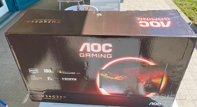 AOC Gaming CU34G2XP - WQHD nuovo, ancora imballato. Veloce display da gaming QHD da 34 pollici con curvatura 1500 R, tecnologia FlickerFree e Low Blue Light per un divertimento senza limiti, frequenza di refresh 180 Hertz. Pannello VA veloce, altezza regolabile di 130 mm, display opaco, uscita cuffie, montaggio a parete compatibile con Vesa 100x100, supporto rimovibile, cornice sottile. Luminosità/contrasto 400 cd/m², 3.000:1, connessioni 2x HDMI 2.0, 2x DisplayPort 1.2 1ms tempo di risposta GTG - Grey-to-Grey 6 modalità di gioco.