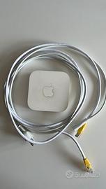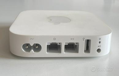 Router wi-fi e base station wireless: Wireless e networking (standard 802.11n band 2,4GHz e 5GHz) x estensione rete wireless/ampliamento portata altra base AirPort; AirPlay Audio con jack 3,5mm analogico/ottico x collegamenti musica; Porta USB x stampante con possibilità condivisione in rete wireless; Configurazione con app Utility AirPort su iOS/Mac; Design ultracompatto.
